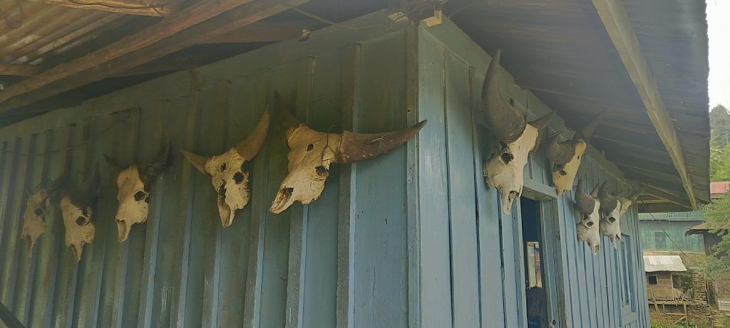 In June 2024, I set off for Zunheboto District, the so-called ‘Land of Warriors’. The area, situated in the heart of Nagaland, takes its name from a flowering shrub ‘zunhebo’, which grows abundantly in the region, and ‘to’ or ‘ato’ meaning a ‘hilltop’. Zunheboto is bounded by Mokokchung District in the north, Phek District in the south, Tuensang and Kiphire districts in the east, and Kohima and Wokha districts in the west. The whole area, totalling 1255 sq. km, is mountainous and covered with dense forest. As per the 2011 census, the district has a population of 1,14,014. The district headquarters in Zunheboto town is 150 km away from the state capital, Kohima. Zunheboto is the heartland of the Sumi Naga community to which I belong, but this was my first visit to this area and I was excited.